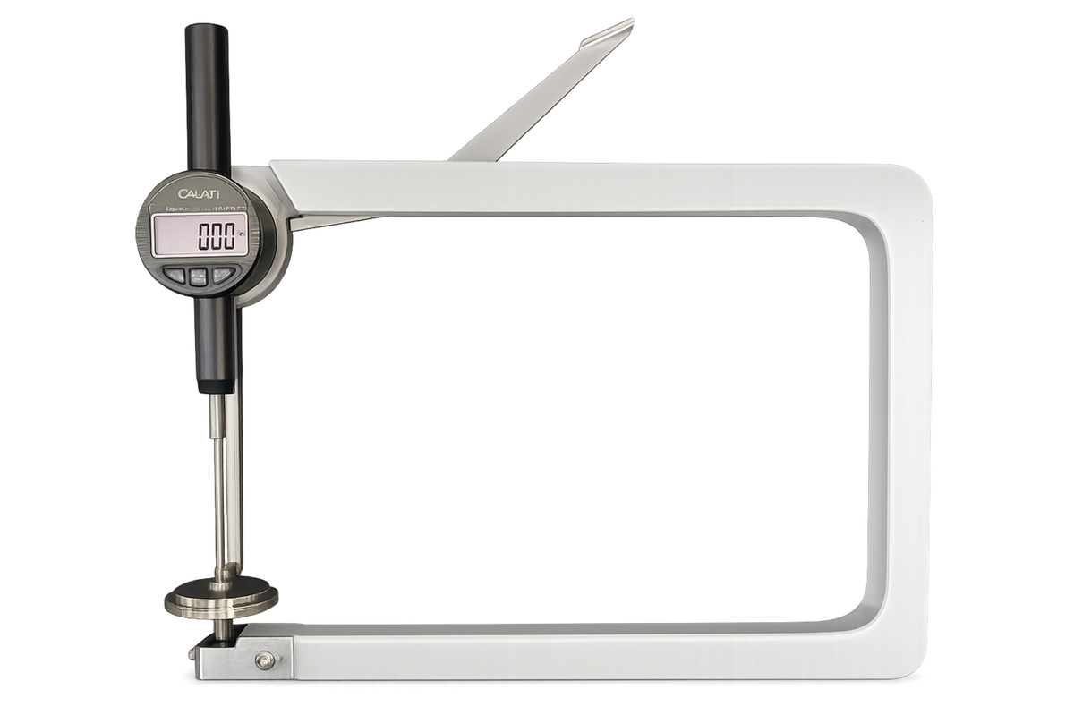 Il Spessimetro Digitale Modello CELLO di Calati è la soluzione professionale per la misura precisa e affidabile dello spessore di legno, tessuti e materiali flessibili o rigidi, con apertura fino a 50 mm e profondità di 300 mm. Perfetto per i liutai nella misurazione di violoncelli e viole senza smontarli.